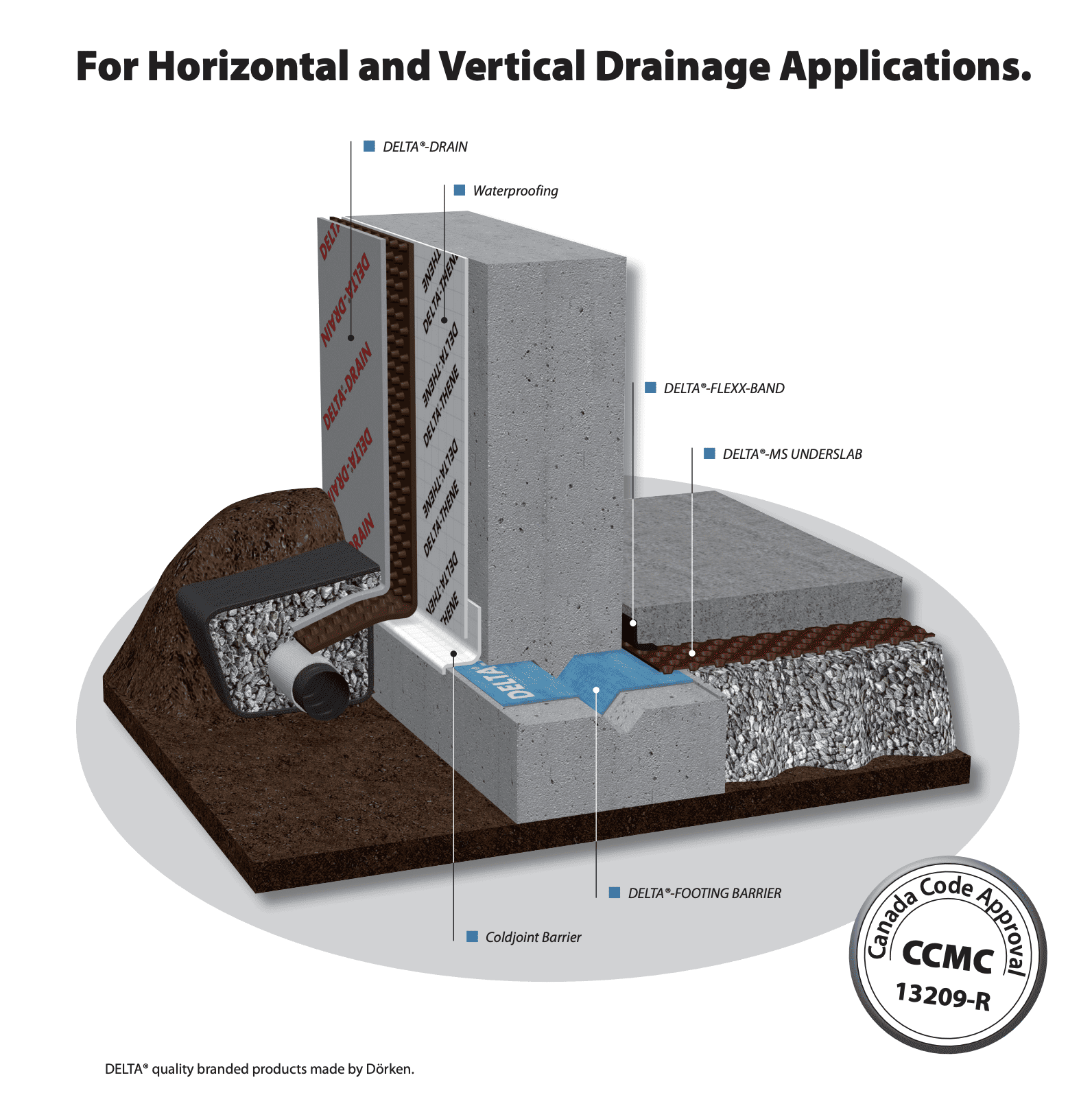 Clay soil has low permeability. It holds water against the foundation, increasing pressure. DELTA-DRAIN provides the "path of least resistance," allowing that water to fall into the drainage tiles rather than seeping through the concrete.