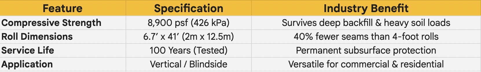 Extreme Depth Rating: Suitable for vertical applications up to seven stories below grade, making it the go-to solution for underground parking garages and deep commercial excavations.