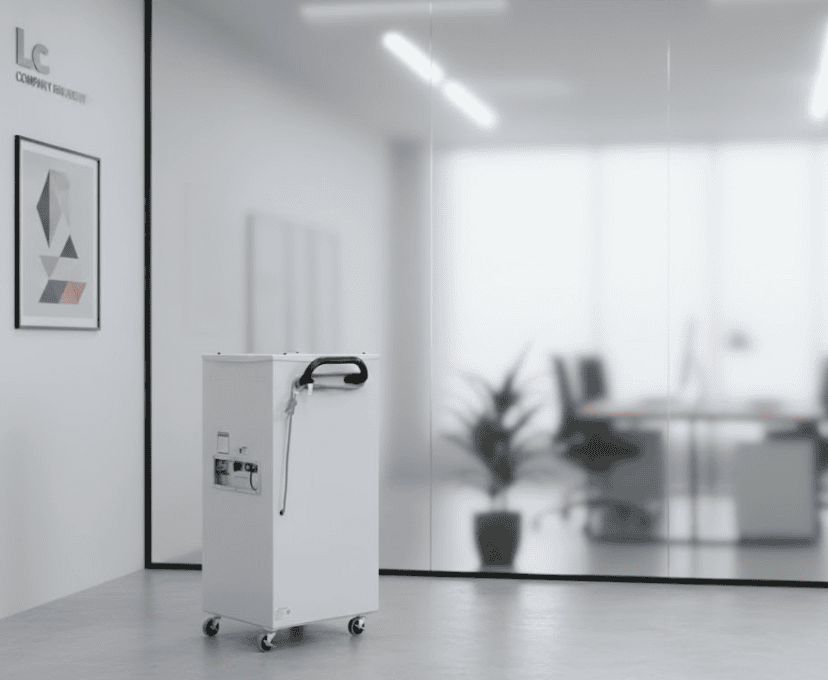 | Sleek, Minimalist Design | Powder-coated steel housing that is mobile (casters) and discreet. |