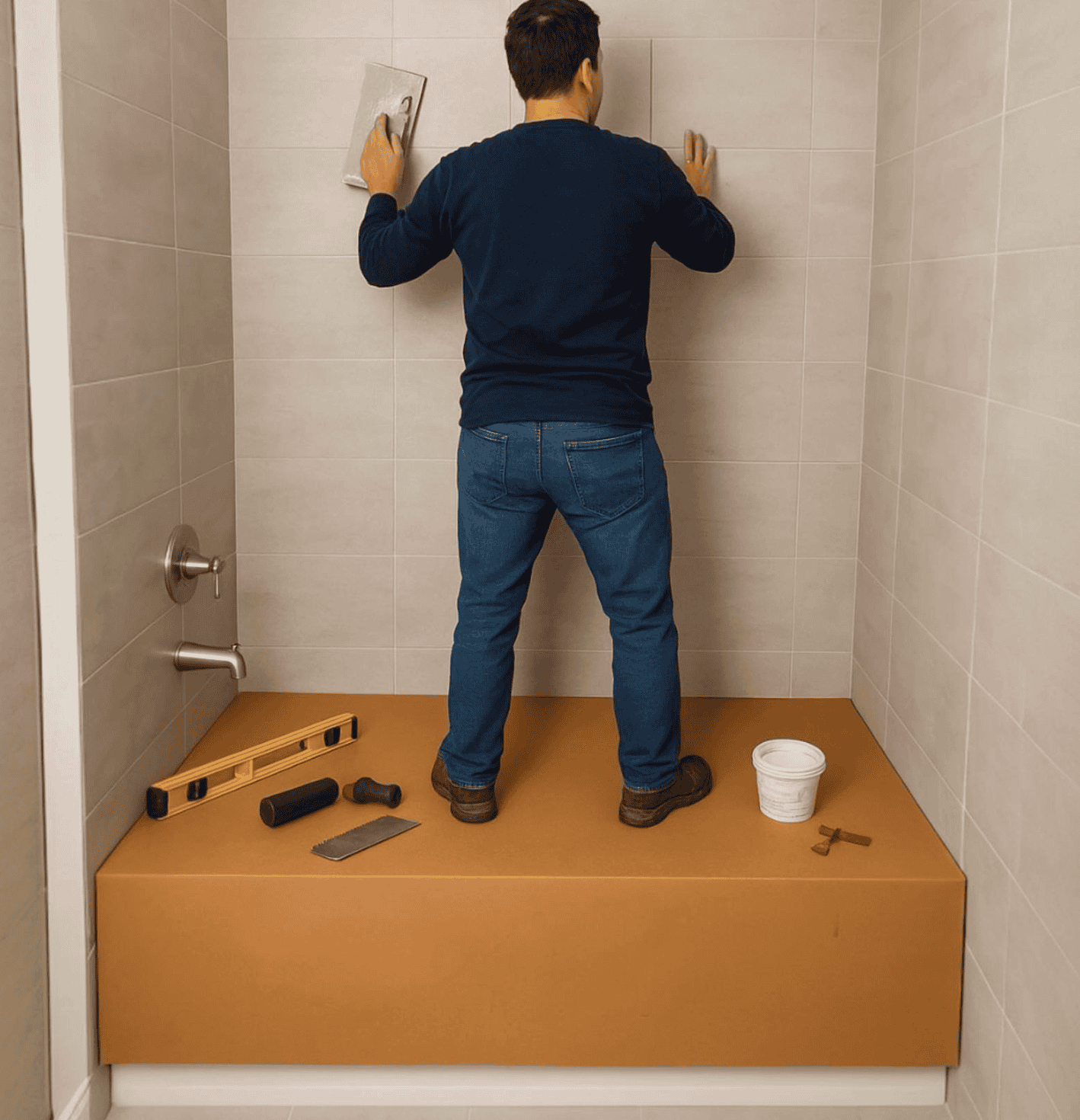 - Safety First: Workers can stand securely within the tub area to tile, install showerheads, work on venting, or paint ceilings, reducing the risk of falls or strains.