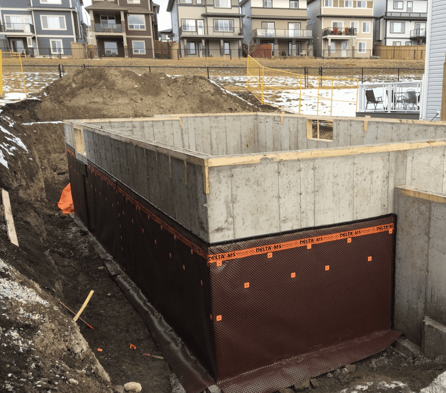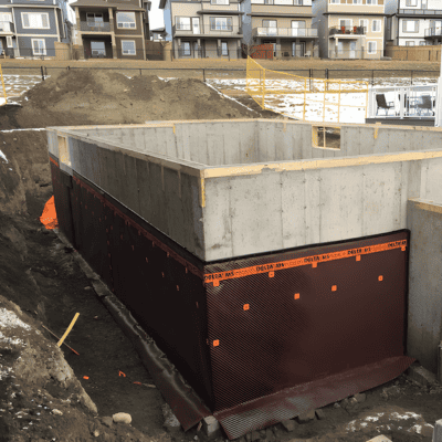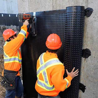 Our below-grade systems combine dimpled waterproofing membranes and foundation drain boards to create a drainage plane, relieve hydrostatic pressure, and protect basements and foundation walls long-term.