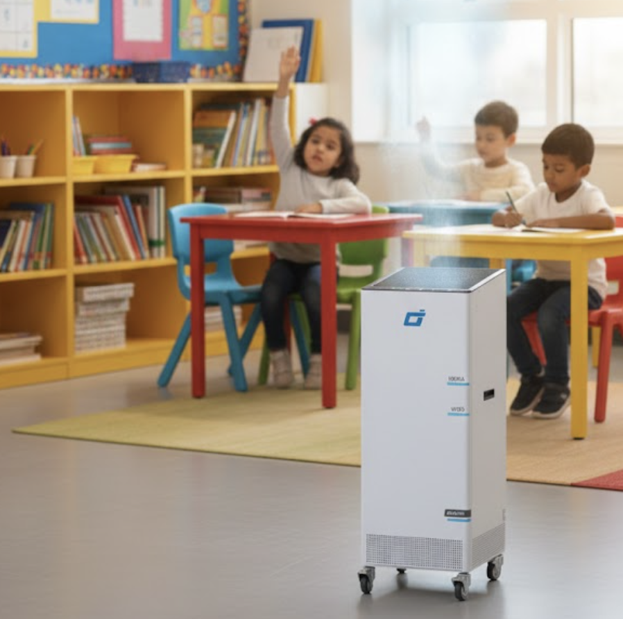 ACH stands for Air Changes Per Hour. It is a measure of how many times the total volume of air in a room is replaced (or filtered) by the purifier within one hour. For commercial settings like offices and classrooms, achieving 6 ACH (meaning the air is fully cleaned six times every hour) is the recommended standard by many public health bodies to significantly reduce the concentration of airborne pathogens and minimize the risk of virus transmission. The Omni CleanAir Series is specifically engineered to consistently achieve 6+ ACH in large spaces.