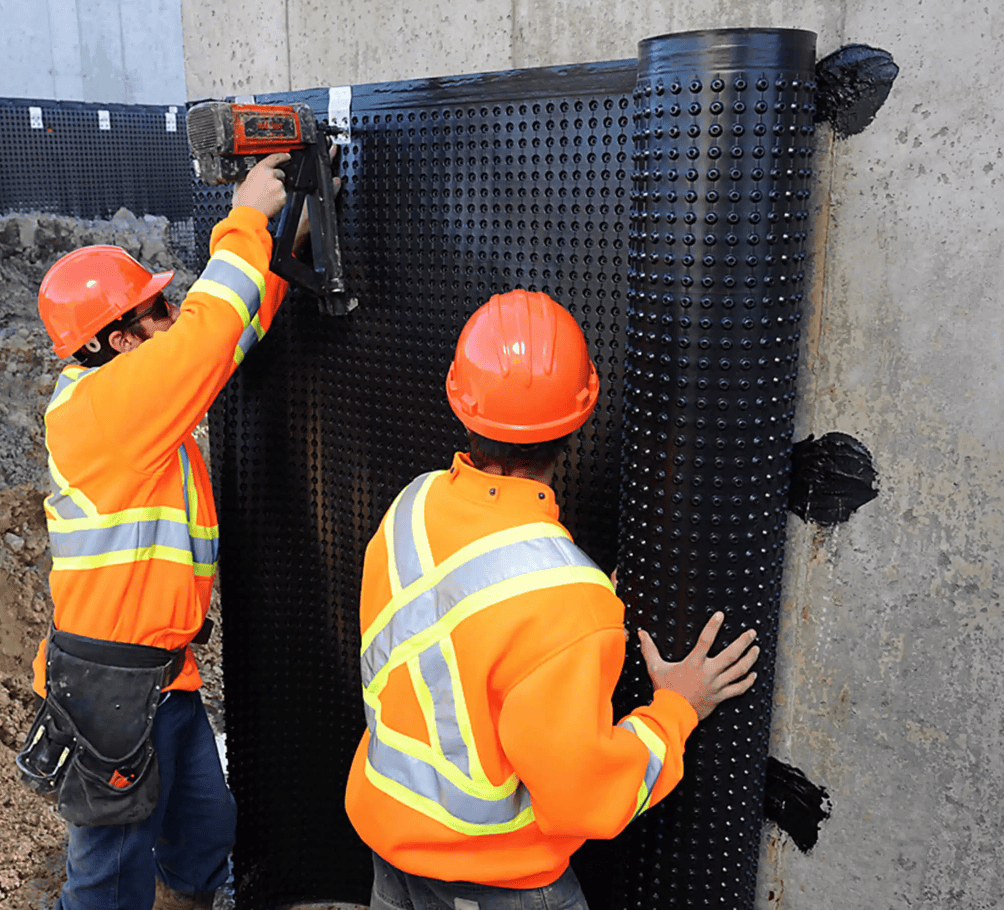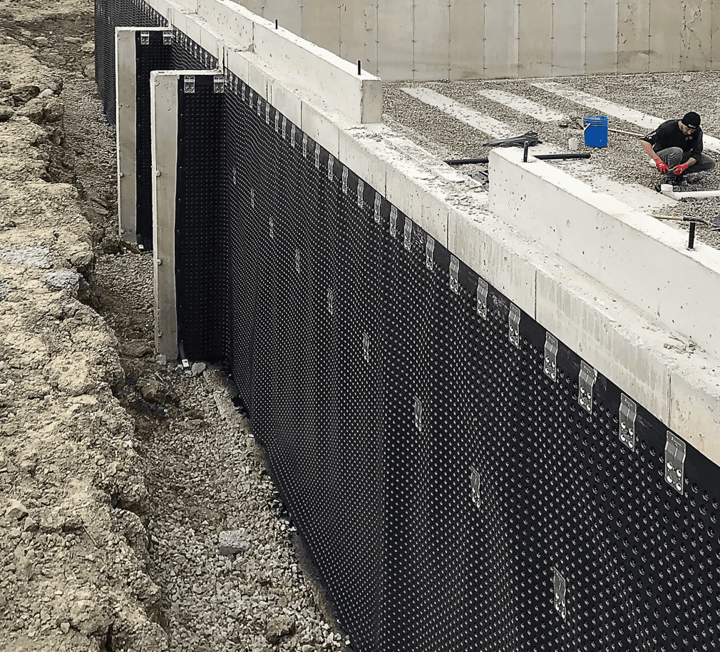 The foundation wall must be clean, smooth, and structurally sound. While minor surface imperfections are permissible, large projections should be removed. Unlike liquid-applied membranes, Platon does not require extensive curing time or specific weather conditions, allowing construction timelines to remain efficient.