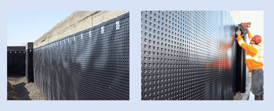 The dimpled design creates an air gap between the soil and foundation. Any moisture that gets past the membrane flows down to your foundation drain, preventing hydrostatic pressure and leaks.